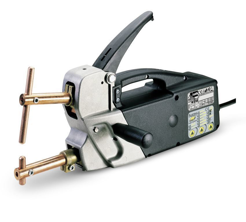Přenosná bodovací svářečka Digital Modular 400 Telwin pro plechy 2+2 mm, 400 V, pulsní a stejnosměrný režim svařovacího proudu. Bodovací kleště pro bodové sváření plechů. Odporová svářečka pro zámečnické dílny.